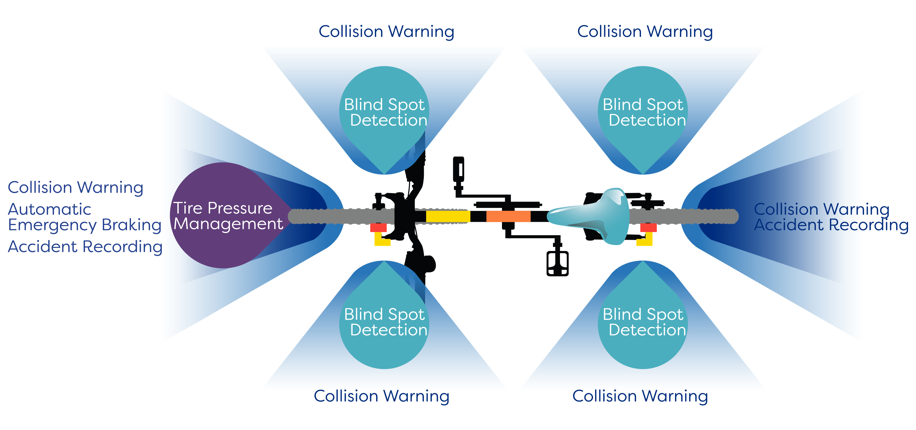 Various responses are then possible ranging from notifying the rider of the collision risk to automatically braking. In addition to monitoring vehicle proximity and velocity to predict potential collisions, the system also monitors the road surface condition. The tire pressure can then be automatically adjusted to ensure that the required level of traction is available.