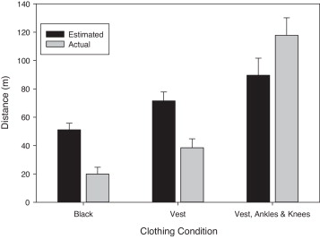 It was found that when cyclist’s visibility was at its worst the cyclists greatly overestimated their visibility. However, when the most effective clothing was worn (a retroreflective vest with retroreflective bands on the limbs) cyclists underestimated their visibility. This may explain why cyclists rarely wear the most effective high visibility clothing. When cyclists wore a fluorescent vest with a static light they overestimated the distance at which oncoming drivers would first recognize them by a factor of seven.